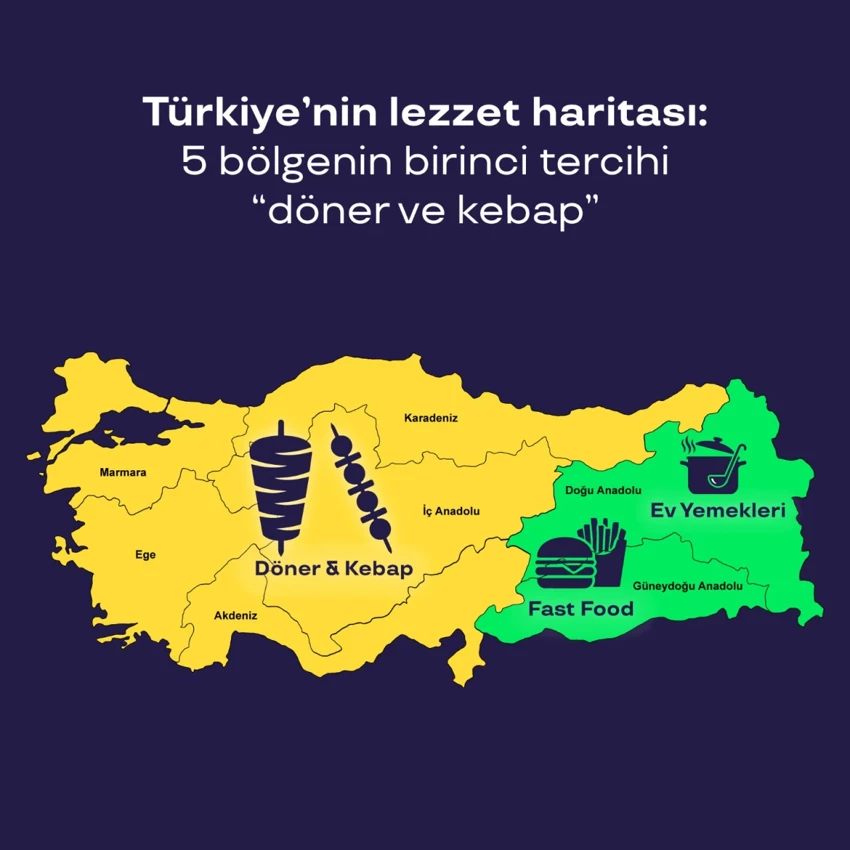 Bölgesel eğilimlere bakıldığında Güneydoğu Anadolu’da fast food, Doğu Anadolu’da ev yemekleri öne çıkarken, diğer bölgelerde döner ve kebap ağırlıklı tercihler dikkat çekti. Sektörel olarak tekstil, toptan-perakende ve eğlence alanlarında fast food yaygınken; medya, sigorta ve telekomünikasyon çalışanlarının daha çok kafe harcamalarına yöneldiği görüldü. Finans ve ekonomi sektöründe ise ev yemekleri ön plana çıktı.